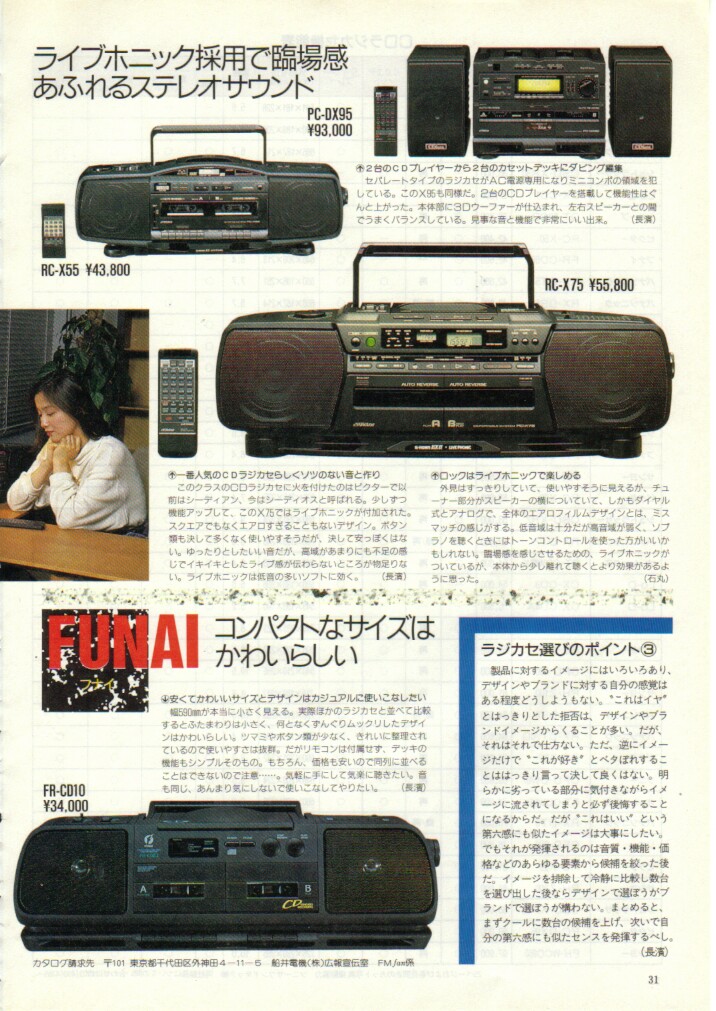 | FMfanのCDラジカセ記事 バブルラジカセ時代のまっただなかです。 |