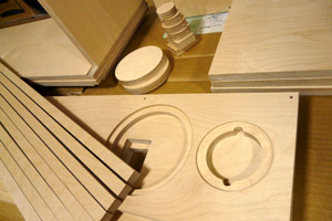 バスレフ式にすると決めたが、只それだけではおもしろくないので、中にウーファーを内蔵してみることにした。
