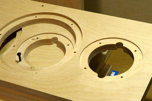 手に入る板材の中から目に付いたのは2440mm×1220mmのロシアンバーチ材で、これを無駄がでないよう板取りし、スピーカーの板材カットで検索するとよく引っかかる3社に見積もりをだした。その中から一番安かったのは横浜の米屋材木店。カットと送料込みで3万円程度で、他の2社より圧倒的に安かった。もっとも他社は板材からして違うので厳密な比較ではない。注文してから3週間ほどして届いた板材の加工精度は実にすばらしい。段落ち加工もユニットにぴったりだった。仮組みしたときにぴったり吸い付くように四角い箱になるのは感動的。