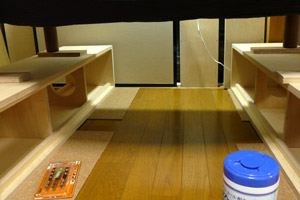 しかも仕切り板は完全に区切っているわけではなく、若干の隙間を持たせている。これはダブルバスレフのような効果をもたらしてくれたらいいなぁというイメージでそうした。