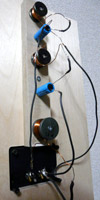 配線にはブリキの薄板を使用、これは10何年も前になんかの目的で東急ハンズで買ったもので、ほとんど使わずに道具箱の中に入れっぱなしだったのだが、まさかこの日になって役に立つとは思わなかった。木板には虫ピンで留めている。