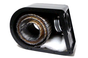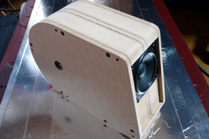 Stereo誌2010年7月号の付録に付いてたFOSTEX P650を使って小型のスピーカーを作ってみることにした。この小さいユニットをみて最初に思いついたのはBOSEのM3。あれをまねしてみようと思ったがパッシブラジエーターを手軽に作る方法がどうしても思い浮かばないので、バックロードホーンでも試してみようかと考える。が、それ小型にならないじゃん…。ということで色々悩んだ末にバックロードホーンの音道をコンパクトにまとめればよくないか?と考え、渦巻きのようにぐるぐるしたホーンを内蔵させてみることにした。