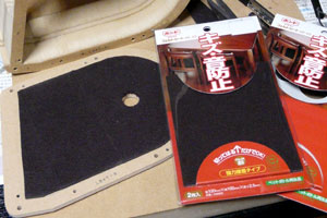 渦巻き部分はサイドの板でサンドイッチにして固定するため、フェルトを内側に貼り付ける。ただの平たい板で挟むとわずかに隙間が出来るのでフェルトで押しつけることで密閉性を高めている。サイドパネルのネジ穴は頼んだ加工がずれすぎてピッタリ揃わないため全部埋めて新たに開け直す。ネジ頭が飛び出さないようにすこし掘る。面倒くさいが仕方ない。